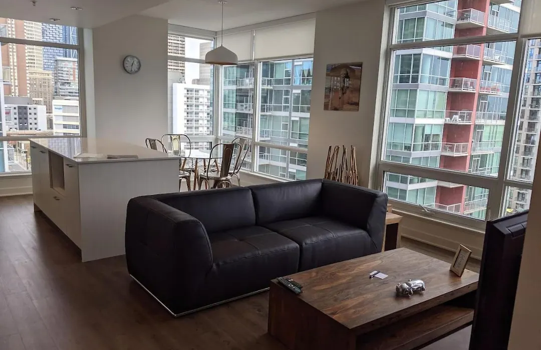 There are a fridge, an oven, and glassware at an equipped kitchenette for self-cooking. Red's Diner with Canadian dishes is fairly close to the Calgary accommodation. Calgary 2 Bedrooms Apartment villa is located within a 2-km distance of Downtown- West Kerby C train station and approximately 5 minutes on foot from 4 Street & 14 Avenue SW bus station.
